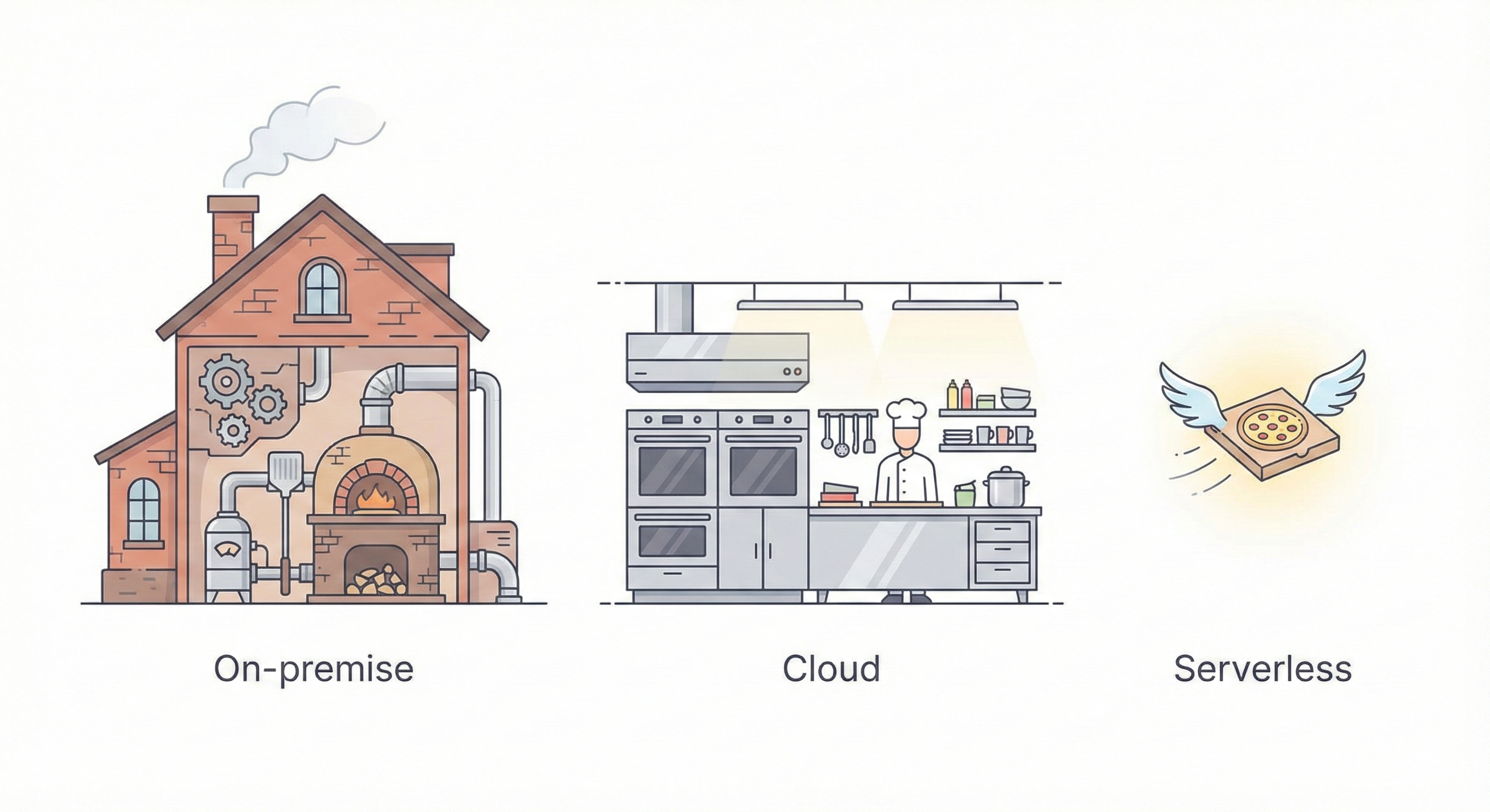 - 온프레미스 (전통 방식): 건물을 사고, 화덕을 설치하고, 가스 배관을 뚫고 피자를 굽습니다. (건물 관리까지 내 몫)