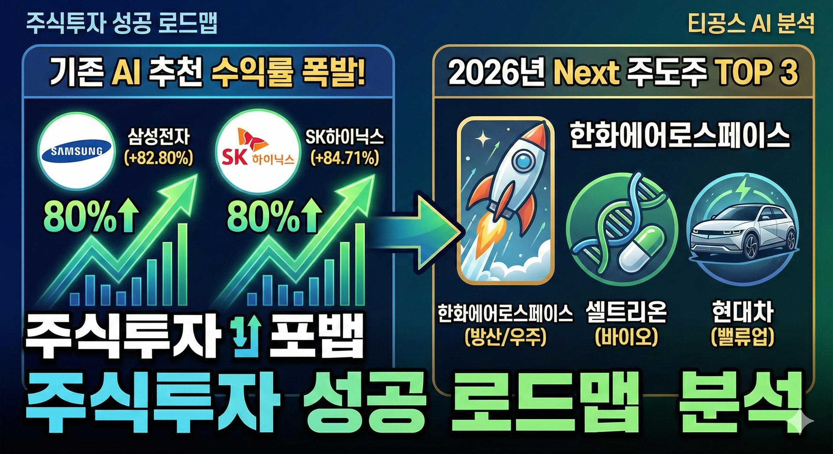 - 분석 요약: 반도체 대장주인 삼성전자와 SK하이닉스는 AI 반도체(HBM4) 양산 본격화와 글로벌 수요 급증에 힘입어 80% 이상의 기록적인 상승세를 보였습니다. 하나금융지주 역시 정부의 기업 가치 제고(Value-up) 정책과 안정적인 배당 매력이 부각되며 46%가 넘는 높은 수익률을 기록했습니다.